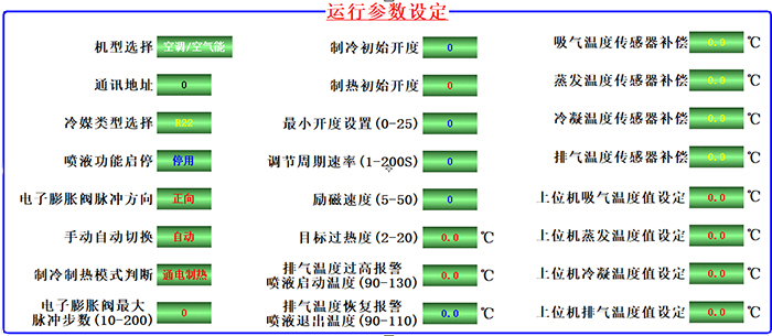 11)、顯示界面上29 路參數(shù)控制參數(shù)設(shè)置/查詢:控制器內(nèi)所有與控制相關(guān)的溫度參數(shù)、時(shí)間參數(shù)、控制參數(shù)、等29個(gè)參數(shù)都可以調(diào)整,以適應(yīng)制冷/熱泵/冷庫/水機(jī)等設(shè)備。