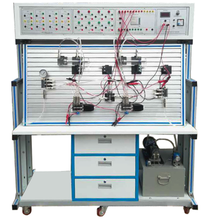 1、液壓PLC控制實(shí)驗(yàn)臺主要由實(shí)訓(xùn)桌、實(shí)訓(xùn)臺、液壓元件和電器控制器件、可編程控制器(PLC)等組件組成。