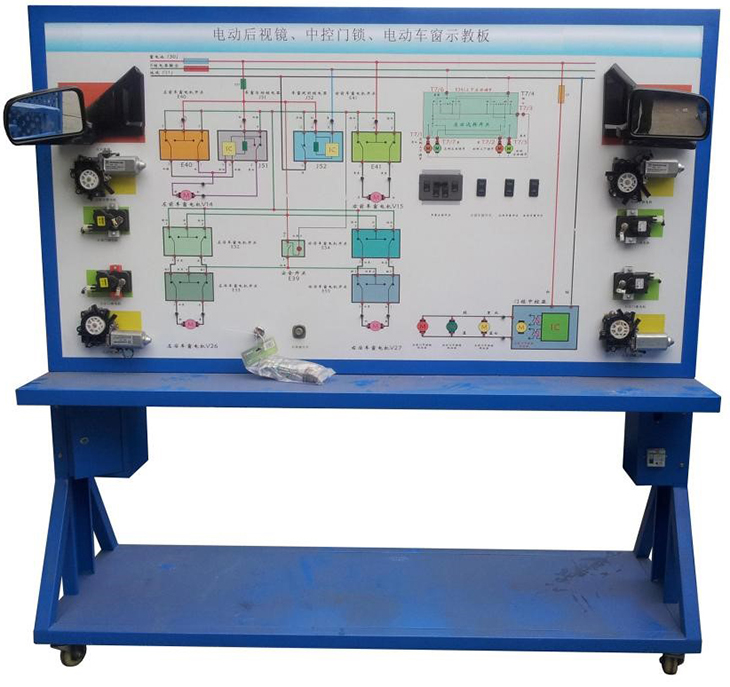 3.示教板面板采用4mm厚耐腐蝕、耐創(chuàng)擊、耐污染、防火、防潮的高級(jí)鋁塑板,表面經(jīng)特殊工藝噴涂底漆處理;面板打印有永不褪色的彩色電路圖;學(xué)員可直觀對(duì)照電路圖和實(shí)物,認(rèn)識(shí)和分析汽車電動(dòng)窗、中控門鎖系統(tǒng)的工作原理。