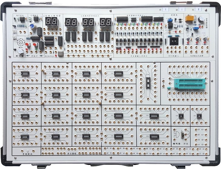 數(shù)字電路實(shí)驗(yàn)箱,數(shù)字電路實(shí)驗(yàn)室,數(shù)字邏輯實(shí)驗(yàn)箱、數(shù)字電路實(shí)驗(yàn)裝置、主要用于開設(shè)電子信息科學(xué)與技術(shù)、自動(dòng)化和機(jī)電一體化三個(gè)專業(yè)的《數(shù)字電子技術(shù)實(shí)驗(yàn)》或《數(shù)字電子技術(shù)基礎(chǔ)實(shí)驗(yàn)》課程,該課程是相應(yīng)的《數(shù)字電子技術(shù)》或《數(shù)字電子技術(shù)基礎(chǔ)》理論課程中重要的實(shí)踐環(huán)節(jié)。課程的任務(wù)是通過實(shí)驗(yàn),使學(xué)生加深對(duì)所學(xué)理論課程內(nèi)容的理解,激發(fā)學(xué)習(xí)興趣,從實(shí)踐上驗(yàn)證所學(xué)的理論知識(shí);培養(yǎng)學(xué)生的實(shí)際動(dòng)手能力、解決問題能力和設(shè)計(jì)數(shù)字電子電路的初步能力。數(shù)字電路實(shí)驗(yàn)箱由鋁木合金箱體、開關(guān)電源、常用信號(hào)源和實(shí)驗(yàn)電路區(qū)組成。其中實(shí)驗(yàn)電路區(qū)采用全開放模式,可根據(jù)需求靈活配置實(shí)驗(yàn)電路,以滿足不同層次學(xué)生的教學(xué)實(shí)驗(yàn)要求。